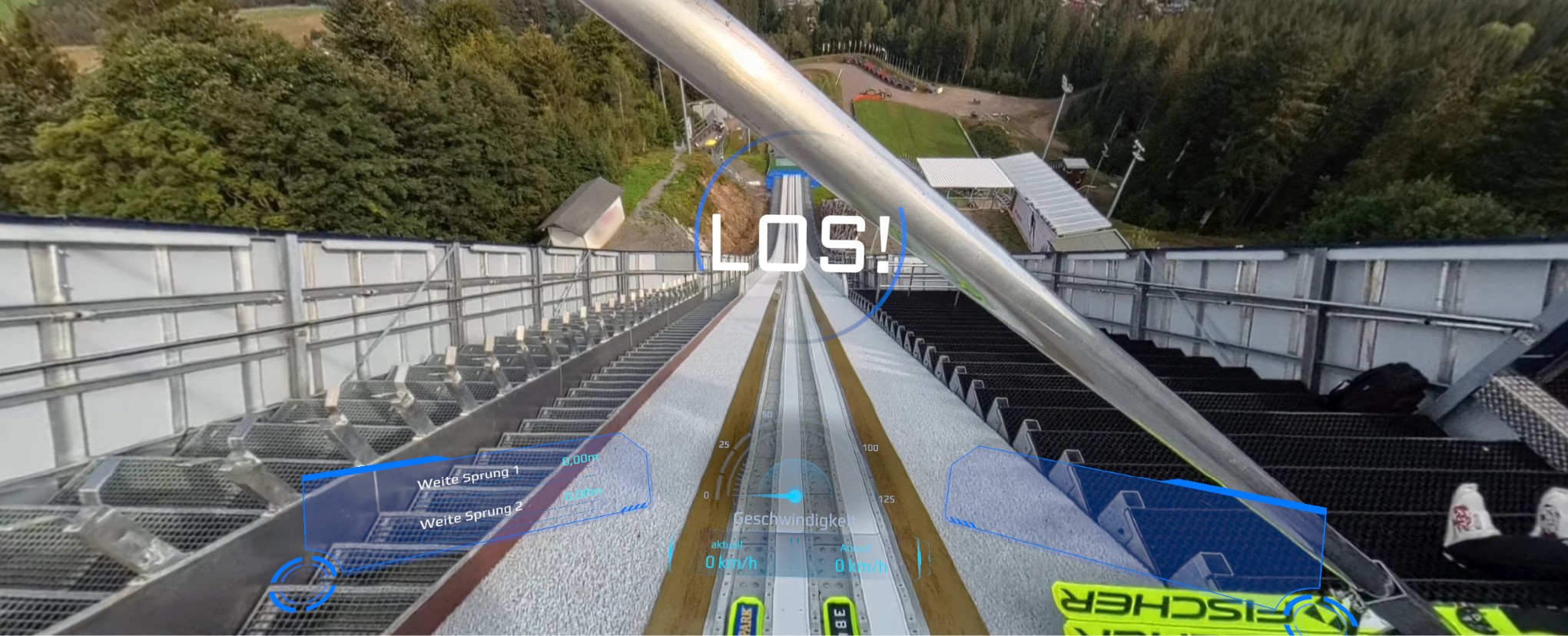 Ausnahmesportler, Olympiasieger und Weltmeister Georg Thoma, dem es als erstem Mitteleuropäer gelang, die Goldmedaille bei den VIII. Olympischen Winterspielen in Squaw Valley /USA zu gewinnen, sowie der erfolgreiche Skispringer Martin Schmitt, der mehrfacher Weltcup-, Weltmeister- und Olympiasieger ist, waren bei der Vorstellung der neuen VR- Experience dabei und zeigten sich begeistert von der detailgetreuen Umsetzung des virtuellen Skisprungs. Modernste Technik bietet den Besuchern dabei ein unvergleichlich realistisch und spektakuläres Erlebnis. Bereits im September dieses Jahres wurden die beeindruckenden Sprünge mit einer Kamera, die auf dem Helm eines Skispringers montiert wurde, aufgenommen. Dabei sind Aufnahmen in extrem hochwertiger Qualität entstanden, die anschließend umfassend gesichtet, geschnitten und bearbeitet wurden. Die finale VR-Anwendung entstand in Unity, einer Entwicklungsumgebung, die besonders für interaktive 3D- und VR-Erlebnisse bekannt ist. Entwickelt von VR Coaster, erlaubt die Anwendung die Darstellung der Videos auf der VR-Brille PICO G3 – einer leistungsstarken autarken VR-Brille, die speziell für immersive Anwendungen konzipiert wurde.
