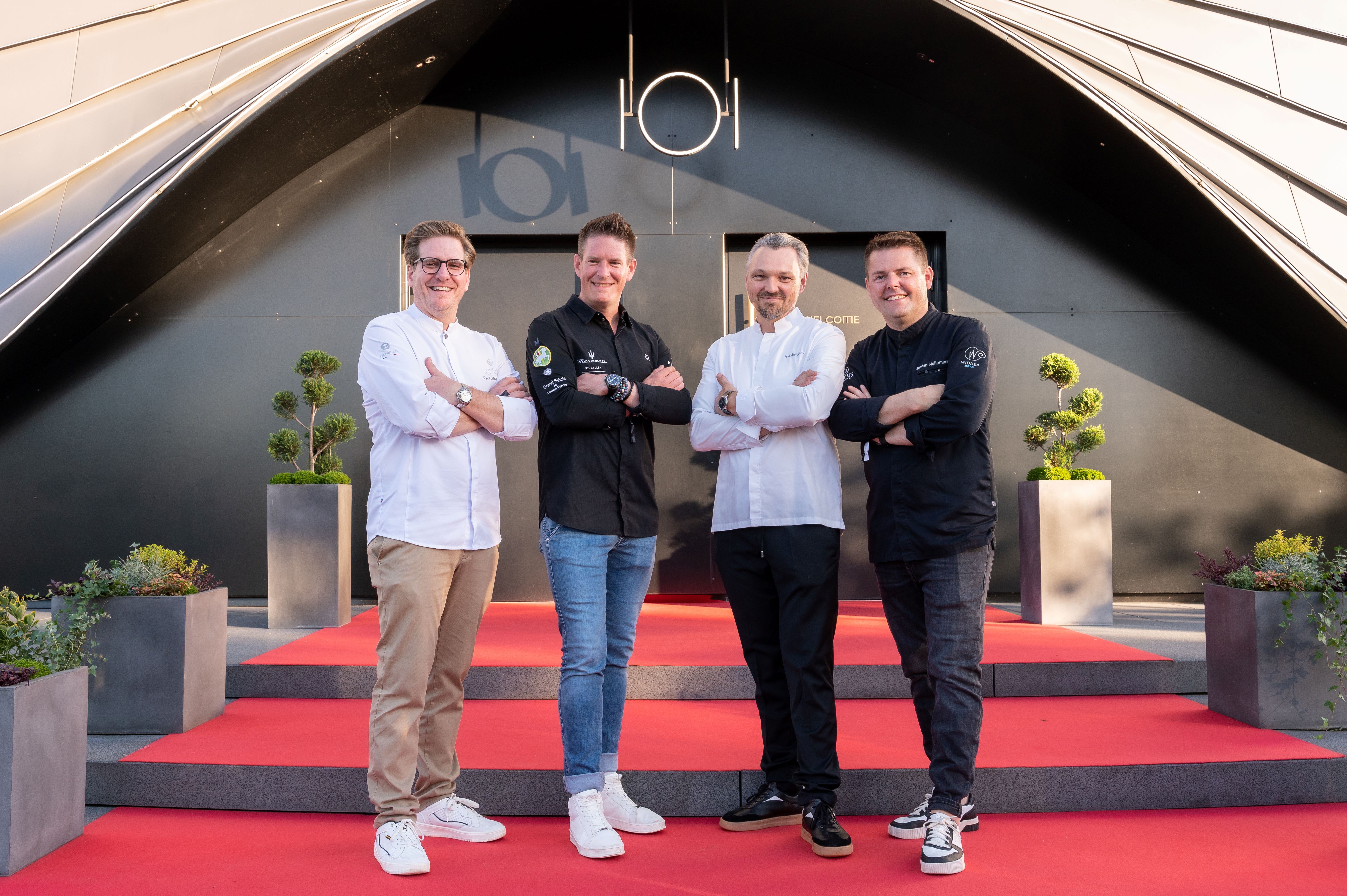 Mit Christian Kuchler aus dem Restaurant Schäfli in Wigoltingen in der Schweiz, Stefan Heilemann aus dem Widder in Zürich und Paul Stradner aus der Villa René Lalique aus Wingen-sur-Moder im Elsass kreierte das Quartett ein neues Acht-Gänge-Menü, das Eatrenalin Gäste ab sofort erwartet.