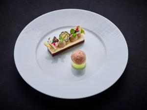 2-Sterne Koch Peter Hagen-Wiest aus dem „Ammolite – The Lighthouse Restaurant“ hat eigens für die Europa-Park Dinner-Show ein erlesenes 4- Gänge-Menü kreiert. Den Auftakt bildet ein lauwarmer Lachs mit Kaffirlimette, Shiso-Vinaigrette und Rettich. Im Zwischengang entführt ein Hokkaidokürbis, verfeinert mit Kaschmir-Curry und Shiitake, die Gäste in eine exotische Geschmackswelt. Der Hauptgang verwöhnt mit einem zarten Schaufelstück vom Kalb, begleitet von cremigem Radicchio Risotto, gerösteten Pinienkernen und Fourme d’Ambert. Den süßen Abschluss bildet eine harmonische Komposition aus Schokolade, Banane und Pandan. Auch für vegetarische Genießer ist gesorgt: Zu Beginn wird ein Daikon-Rettich mit Reis und Miso serviert. Weiter geht es mit einem aromatischen Hokkaidokürbis mit Kaschmir-Curry und Shiitake sowie als Hauptgang ein feines Radicchio Risotto mit Pinienkernen und Krause Glucke, vollendet durch den charaktervollen Fourme d’Ambert. Das Dessert ist identisch und sorgt für einen köstlichen Höhepunkt. Passend zu den kulinarischen Highlights kann eine Getränkepauschale gebucht werden. Die Gäste haben die Wahl zwischen alkoholischen und alkoholfreien Getränken. Die alkoholische Pauschale enthält ausgewählte Weine vom Weingut Isele, Bier, Softdrinks sowie Kaffee-Spezialitäten. Bei der alkoholfreien Variante sind alle Soft- und Heißgetränke sowie feinste alkoholfreie Essensbegleiter vom Weingut Bodegas Miguel Torres enthalten.