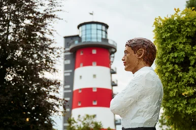 Le phare de 35 mètres de haut de l’hôtel thématique 4 étoiles supérieur « Bell Rock » abrite six suites au design individuel, dont la chambre de luxe de 38 mètres carrés pour deux adultes et deux enfants baptisée « Ahoi Heimat » et conçue par Stefan Strumbel. Cet artiste de renommée internationale, né à Offenburg, connaît Europa-Park depuis son enfance. Il réinterprète ici l’idée du « pays natal » en associant le pop-art et le street-art à la symbolique du voyage, de la nostalgie et du retour. Le miroir, le lit en forme de cœur et des éléments nautiques invitent les clients à une réflexion sur le thème du « chez-soi ». Strumbel, connu pour son art provocateur et ses suites d'hôtel, jette ainsi des ponts entre l’art, l’espace et les visiteurs.